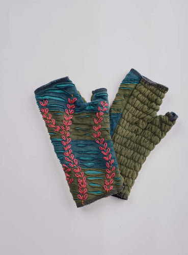 Green Tulip Embroidered Cotton Handwarmer
